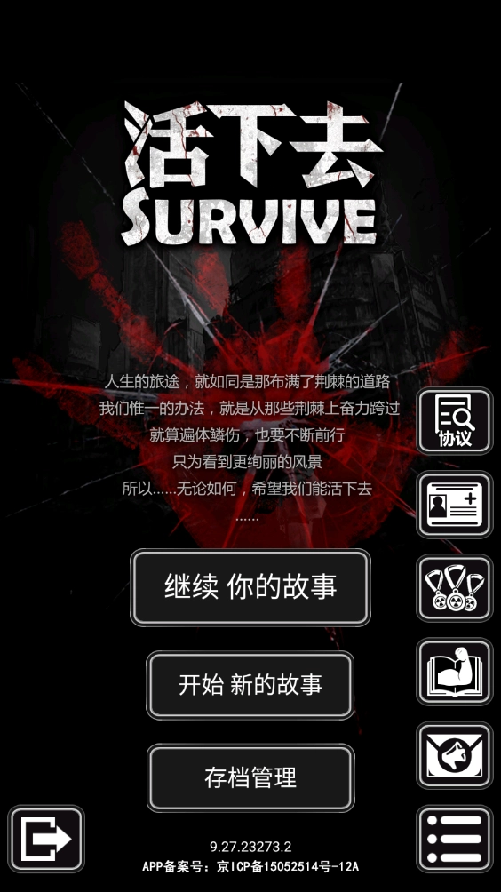 活下去,一款可玩性极高的末日丧尸题材冒险生存游戏。整体采用惊悚诡异的末日基调,配合暗黑氛围的场景设计,让你能沉浸式体验这场刺激的生存挑战!游戏包含剧情与无尽生存两种核心玩法:剧情模式下,玩家将跟随故事线经历亲情、友情、爱情等多重人性考验;无尽模式中,则需凭借实力与策略尽可能延续生存时长!