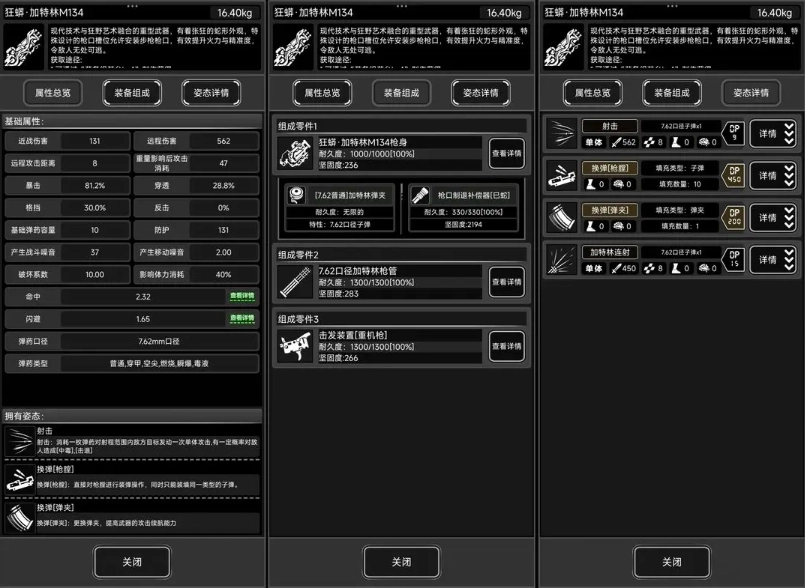 熟练度:重机枪类/加特林M134/射击7级