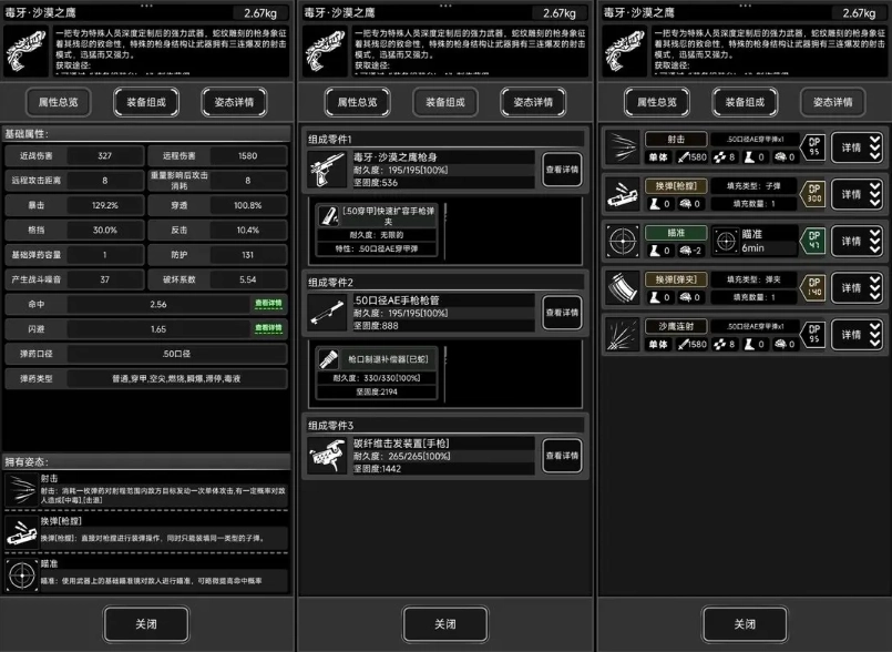 熟练度:手枪类/沙鹰手枪/射击7级