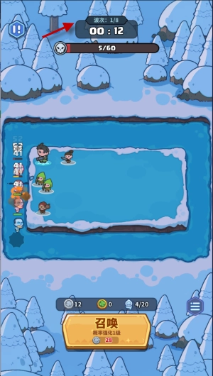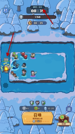 1、游戏里箭头所指的是领主,点击下方的召唤按钮,消耗银币就能召唤出其他英雄啦。