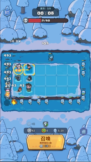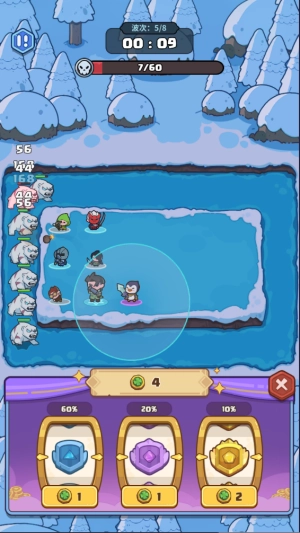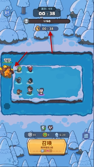 2、上方的倒计时结束就会不断出怪了,英雄们会自动攻击范围内的敌人。