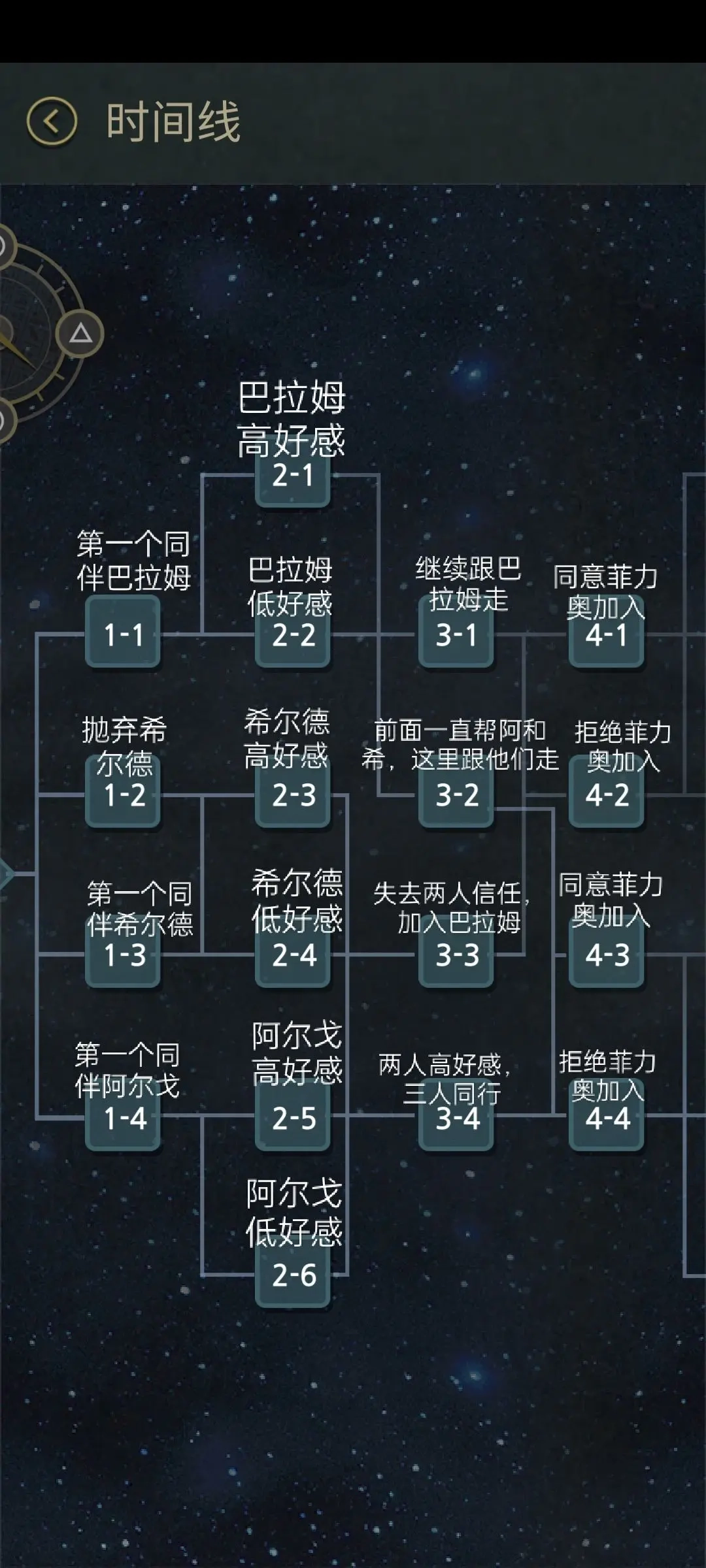 得罪除了巴拉姆以外的所有人,或者得罪所有人,或者前期好人但是和希尔德吵架不安抚;最后对菲力奥开枪。