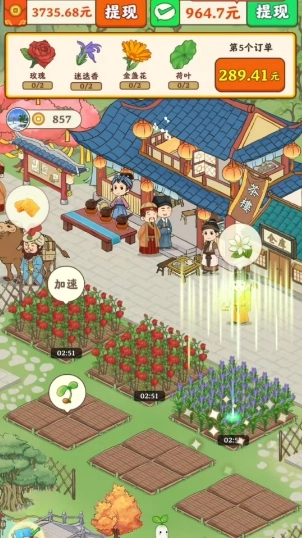 3、游戏加入了全体加速功能,一旦使用,就能让所有的鲜花全部成熟,节省了不少时间。