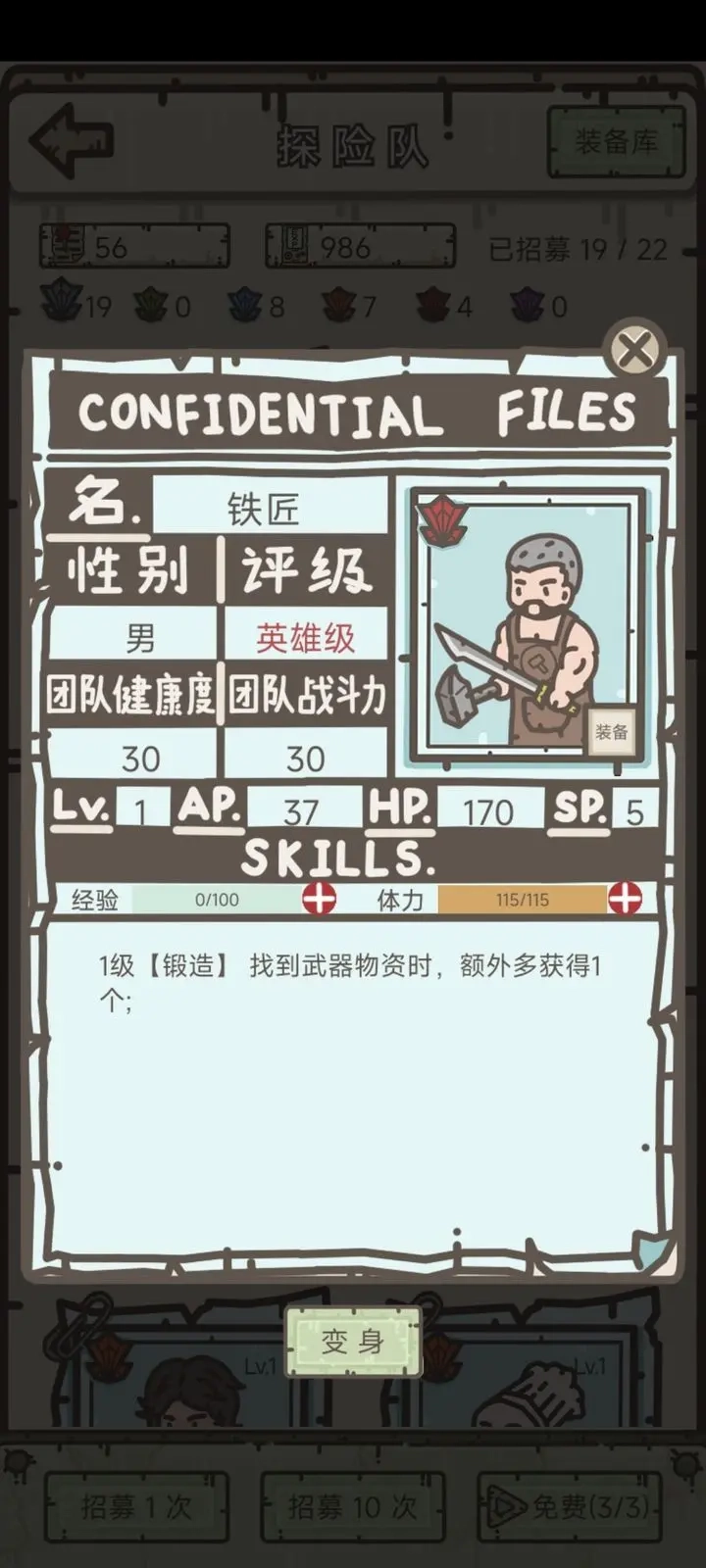 ②铁匠铺解锁22个成员时,时之沙(远征掉落)存档,刷不到不探索不生产至营地毁灭重开,直到刷出铁匠和药剂师。