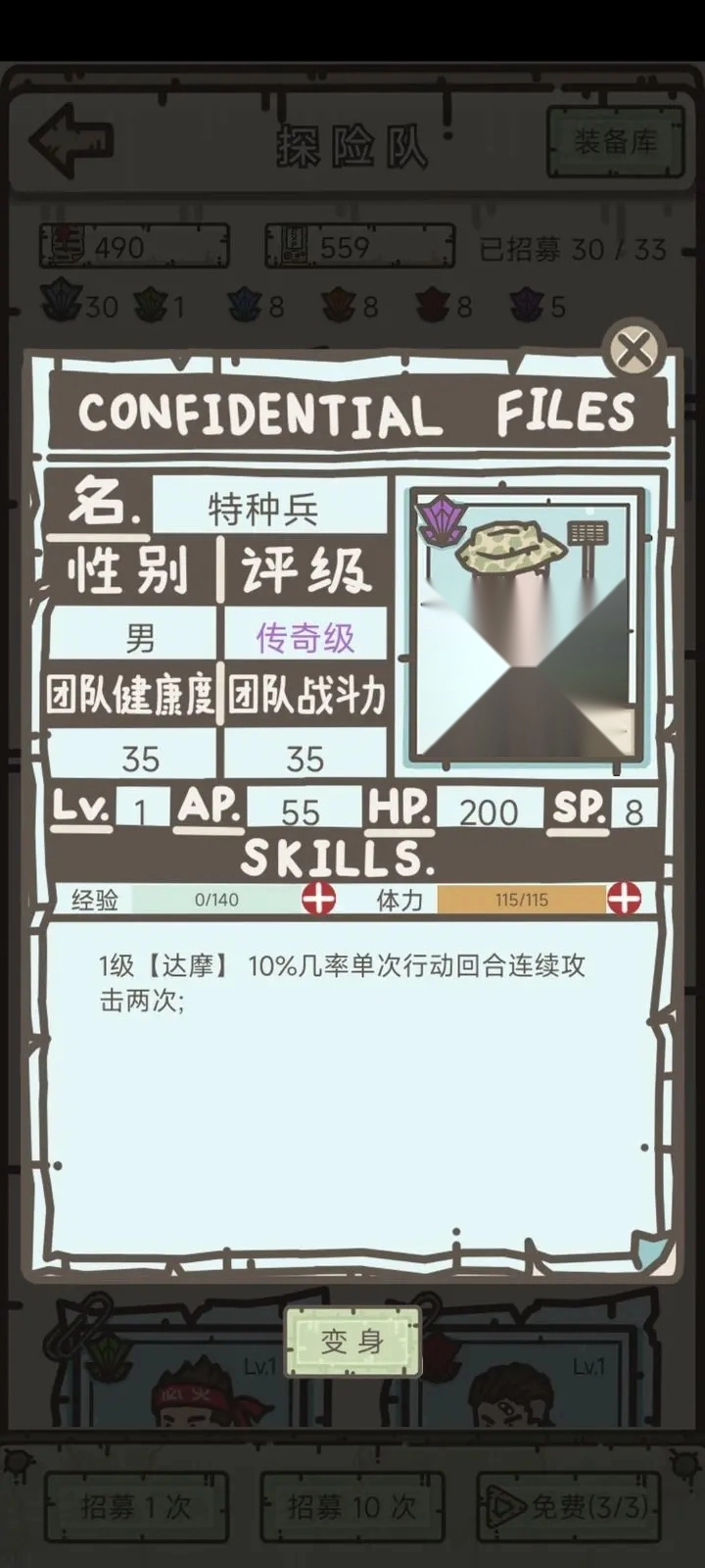 ③257天刷出特种兵直接升至满级,我是用逆转算法(远征掉落)将铁匠经验给他,逆转算法多了,就把药剂师也升级了,阵容是7级神农氏+7级特种兵+7级药剂师