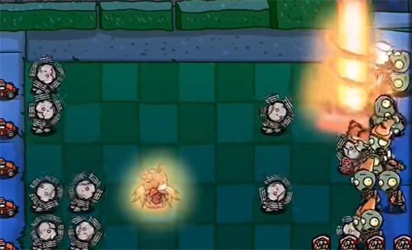 2、僵尸来袭后,立马种植焰皇花,可以击杀大量僵尸。