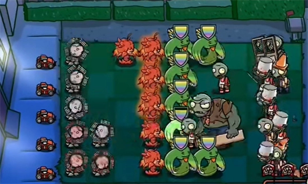 1、游戏开始时先种植爆燃葵,这样能够获取大量的阳光。