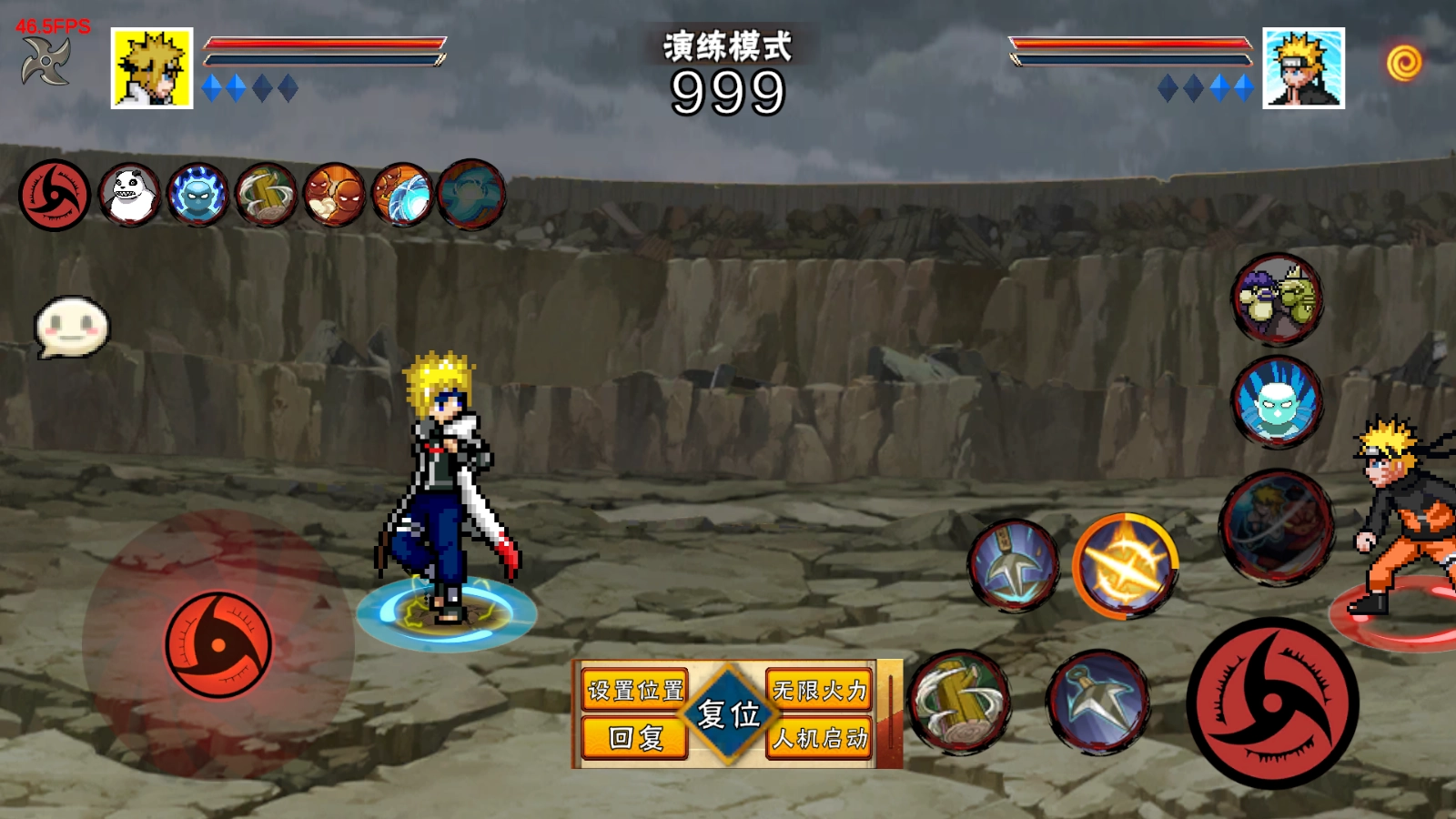 4、玩家会遇到不同的对手,比如鸣人、佐助,直接使用右侧技能快速攻击。