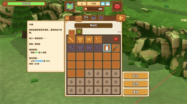 2、在物品栏中可以更换武器装备,或使用消耗品恢复生命值与状态。