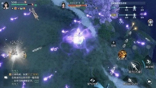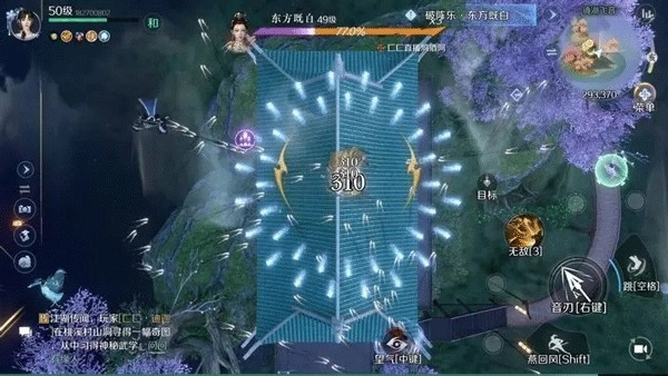 通过地面阶段后便进入飞天阶段,要时刻留意躲避技能,持续调整自身位置。上天之后,除了常规射出音刃进行攻击外,别忘了使用内力屏障技能——它能提供3秒的无敌时间;另外,燕回风也可实现0.5秒的无敌效果,副本过程中需灵活运用这些技能。