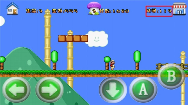 3、进入游戏后,玩家们可点击固定的虚拟按键来操控玛丽;