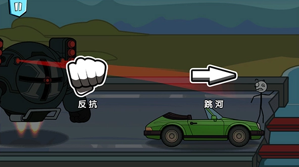 1、启动游戏,点击开始按钮。主角被追至断桥旁,这时可以选择抵抗或者跳河,不同的选择会导向不一样的结局。