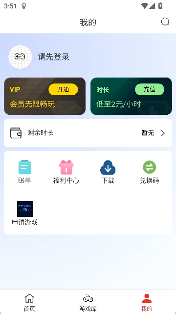 口袋云游戏界面非常简洁,采用vip计费和时长计费两种游玩模式,软件会实时更新最新、最热门的游戏,如果没有喜欢的还可以向申请添加,考虑得相当周到。