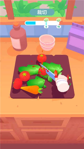 具体的操作流程非常直观:首先根据顾客需求挑选蔬菜种类和数量,然后用刀具将原料切成合适的大小,再按照菜品的具体要求进行调味或烹饪。整个过程既简单有趣又不失专业感,能够让玩家轻松上手,同时深入体会烹饪的乐趣。通过这些步骤,玩家可以对整个烹饪流程有更清晰的认识。