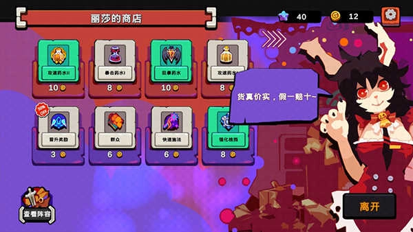 7、关卡内设有商店,玩家可使用金币购买消耗品和圣物羁绊,进一步增强队伍实力。