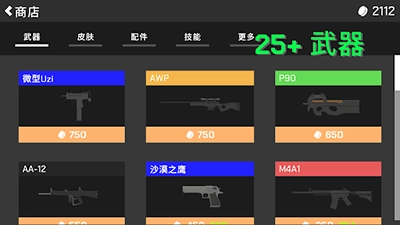 包含步枪、霰弹枪、狙击枪等多种类型,支持全自动、半自动以及三连发射击模式。同时提供红点瞄准镜、ACOG瞄准镜等配件升级,更有迷彩皮肤供选择。