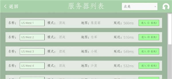 2、选择服务器所在区域,开始连接网络匹配。