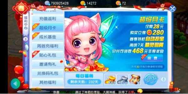 购买月卡每天可领取888金币,半个月卡下来就是2.6万金,性价比非常高。此外,月卡还附带其他福利。