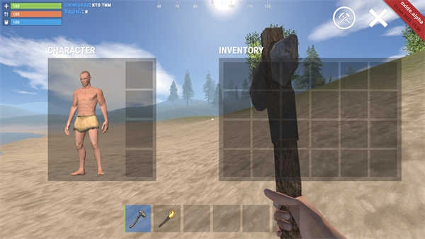 2、右上角的背包功能强大,可查看制造清单与装备详情。通过拖拽操作,将物品放置到屏幕下方腰带中,点击切换使用。