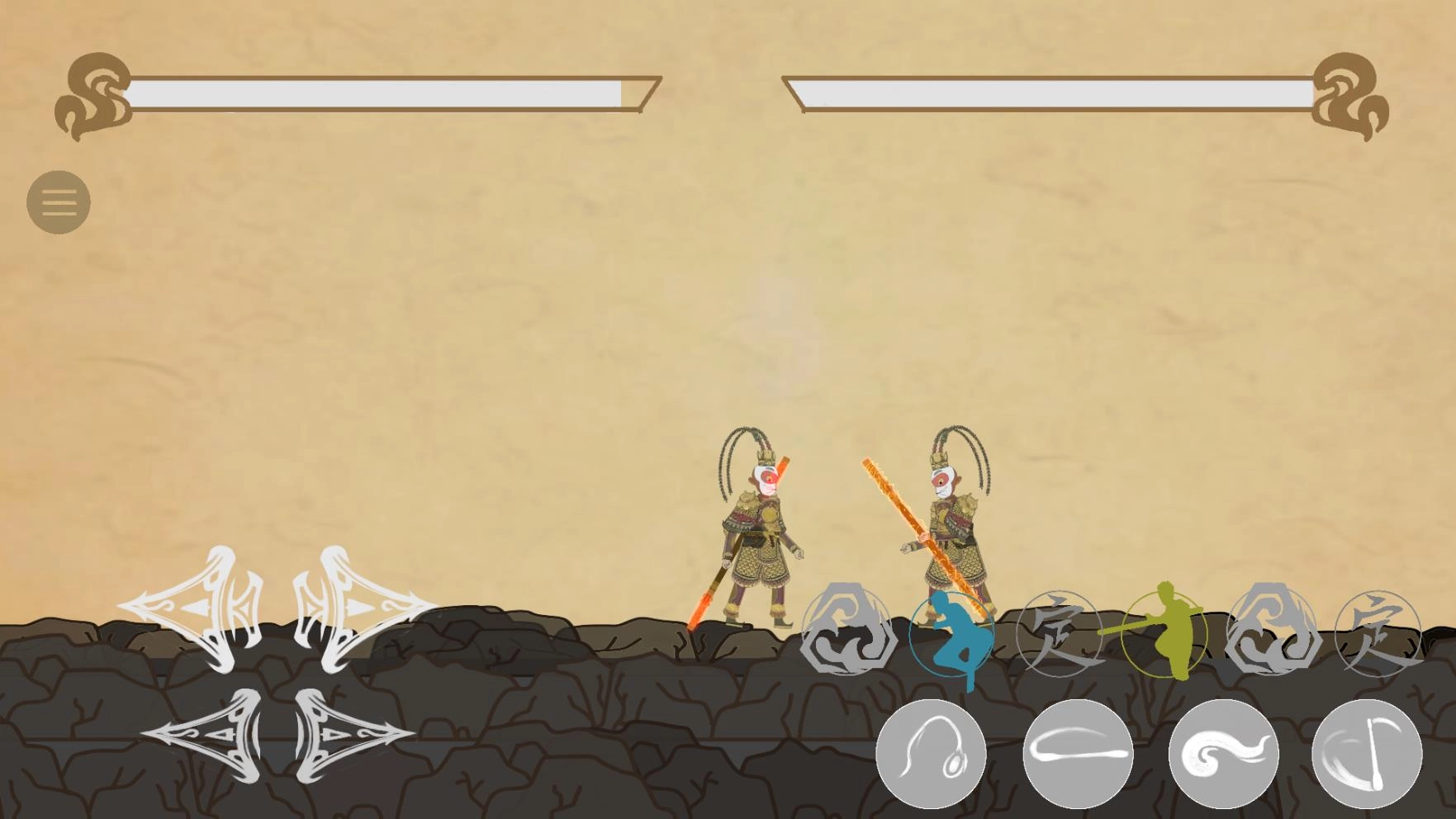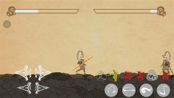 4、点击上方的圆形按钮,能够施展三种不同的棍法、金刚不坏以及定身术,并且消除的圆形按钮数量越多,招式的威力就越大。