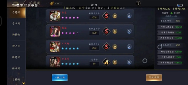 这里说一下,评分高的武将一定要放到将阁,将阁的战力加成要比兵阁多很多