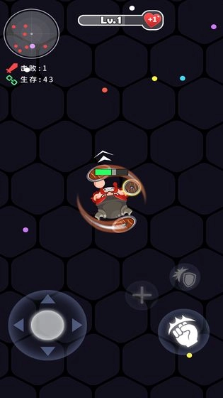 2、不断的去吸收地图里的小点点可以用来增加你的血量,可以在游走之中寻找时间对敌人发起攻击;