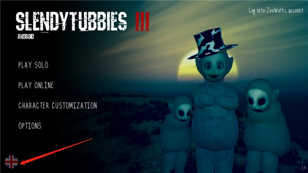 1、因为鬼畜天线宝宝游戏本身是英文简体,所以我们第一次进入游戏时,要点击左下角的图标。