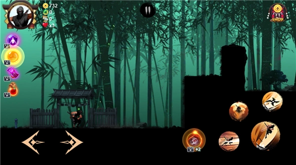 2、左边为左右操作键位,右边是跳跃、攻击、冲刺攻击、隐身