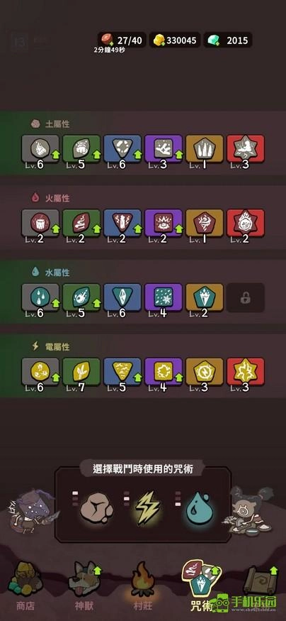 强化顺序建议:同步提升神兽等级(以此增强小罐猫的灵魂产出量以及仓鼠的爆发强度)与电系咒术等级。待神兽等级达到七级左右、电系咒术满级(大约在35波时),再着手强化土系咒术。