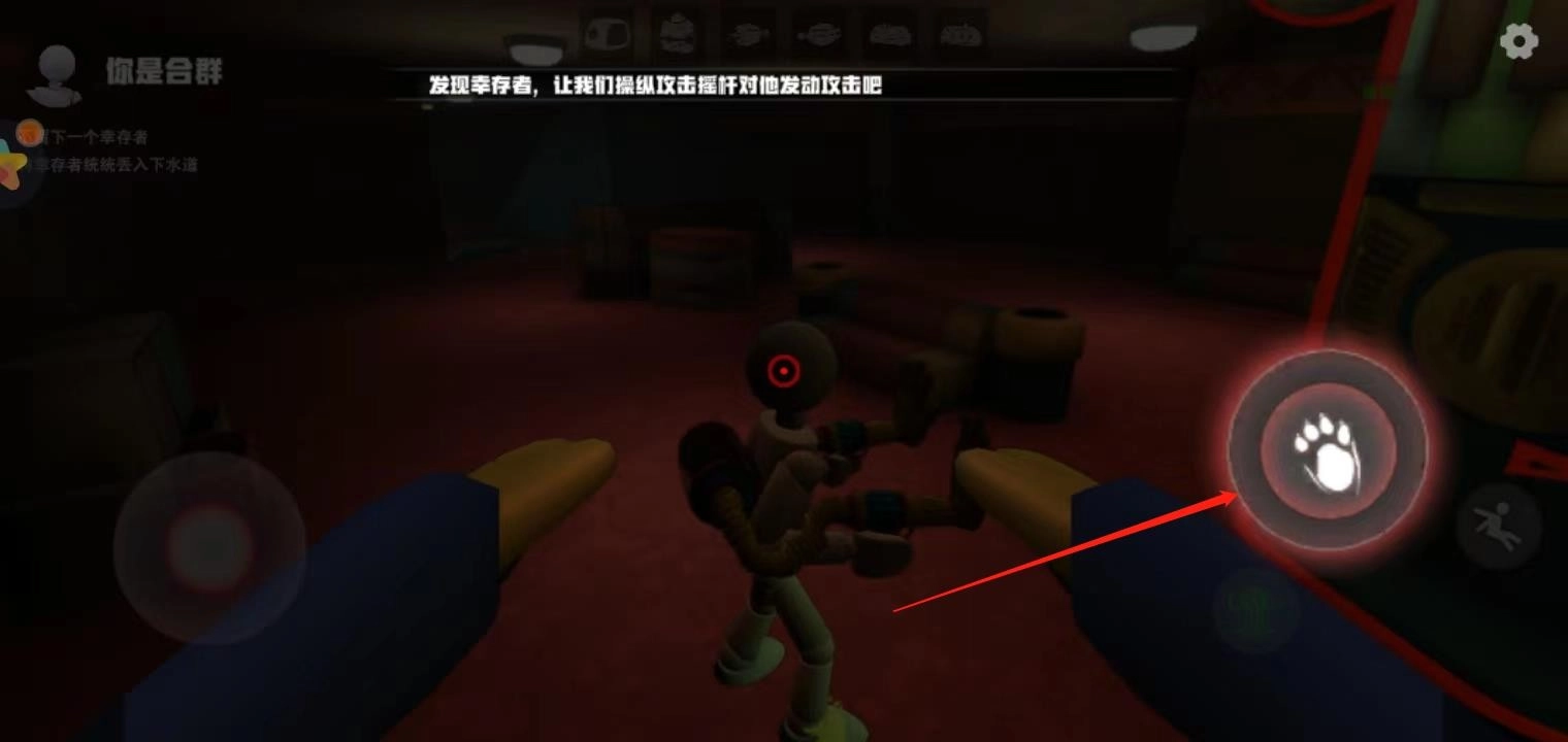 4、发现幸存者,让我们操纵攻击摇杆对他发动攻击吧;