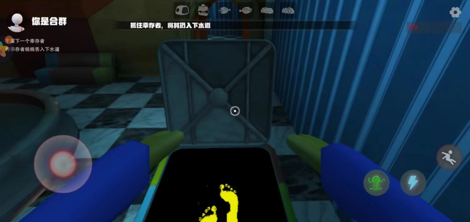 如果是怪物的话,你的任务就是阻止幸存者制造更多和你一样的玩具,不能留下任何一个幸存者,抓住他们后就把他们全都丢进下水道。