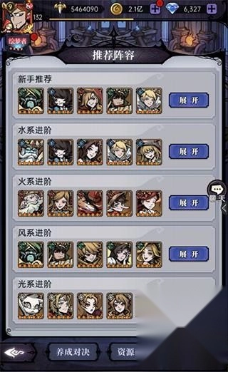 1、冒险者们在城堡里面召唤伙伴,可以在界面右上角的推荐栏里面查看推荐阵容,根据自身目前拥有的伙伴或想走的阵容路线进行选择。