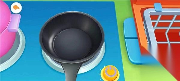 6、点击开关,滑动锅中的油,随之将食材放入。