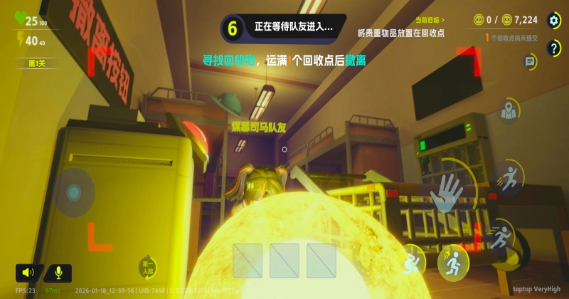 4. 核心任务是收集分布在教室、走廊、屋顶等12个功能区域的污染源物体(可拾取的物品共有7种,它们的外观与交互特性均不相同),并将所有物品运送至指定的净化终端进行计数。每一轮都需要达到最低回收标准,方可解锁完成状态并进行结算。