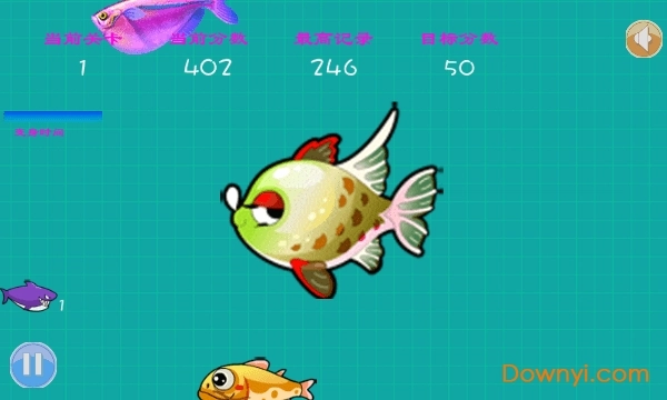 滑动屏幕就能操控小鱼游动,吃掉比自己小的鱼就能积累分数。不过一定要注意,得离那些模样凶狠的大鱼远一点。
