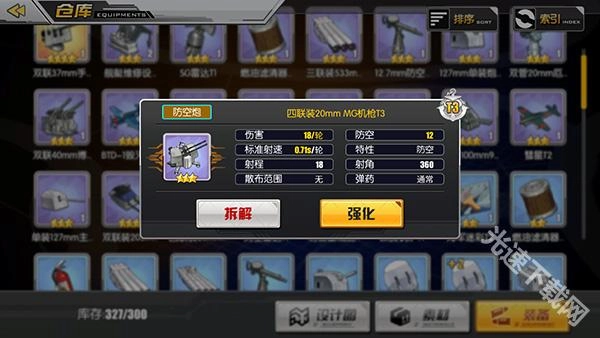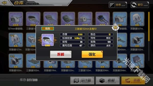 在装备属性里,舰炮具备锁定、散射与跨射的特性差异。关于伤害的示例:4x3,其中4代表基础伤害,3则表示炮弹数量。